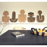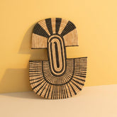 These woven abstract masks made from palm leaves, mixing natural and dyed fibers. They are  bold wall decor - inspired by traditional African masks.