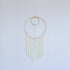 A beautiful, handwoven wallhanging made by artisans in Mexico using a brass ring and 100% nylon yarn.
