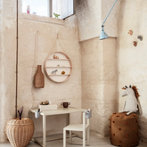 Add a playful touch to your child’s room with this hand-carved animal hook. Crafted from 100% aspen wood and painted by hand, it features lifelike glass eyes and charming safari-inspired details. A fun and functional decor piece to help kids stay tidy.