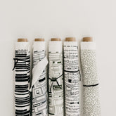 Basilone was inspired by endless Summer sessions at one of Courtney’s favorite spots. It is digitally printed on Belgian Linen (55% linen/45% cotton) and has a 55” print width. The repeat is 9" X 11".