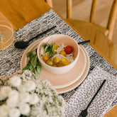 The Basilone Napkin in Albatross is responsibly printed, cut and sewn in the US.
