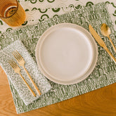 The Basilone Napkin in Cereus is responsibly printed, cut and sewn in the US.