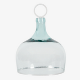 The dramatic silhouette of a classic wine bottle demijohn inspired our Bianca Glass Cloche. The glass cloche is topped with a white salvaged iron ring handle. This decorative accent is handmade from 100% recycled glass and pairs with serveware like cake stands, trays and trivets for a large array of styles and arrangements.