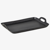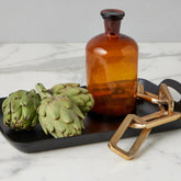 This sleek metal tray adds a touch of modern style to any space. Designed for decorative use, it's the ideal ottoman style for pairing with coffee table books and candles. Easily elevate a bathroom counter by using this tray to display fragrances, bottles and soaps. Create a chic and functional statement with this versatile tray.