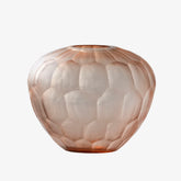 The Bonita Hand Cut Glass Vessel features a distinctive honeycomb pattern, meticulously hand-carved to enhance its artisanal quality. Crafted from opaque glass with a subtle blush hue and a satin finish, this vessel offers an elegant, understated aesthetic. Its small round opening is perfectly designed for displaying fresh or dried flowers, making it a refined choice for sophisticated floral arrangements or decorative accents.
