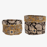 Meet our Emma Fabric Basket Set, a block printed multifunctional set of two 100% cotton baskets. They are block printed by hand and reversible, double the fun!