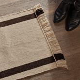 Our Calm Kelim Mat brings a modern twist to traditional kelim craftsmanship. Handmade from 100% wool, each mat features hand-dyed yarns that make every piece unique. Woven on a 'Punja' loom, one of the oldest manual techniques, the coarse texture of the yarn adds a tactile quality that is characteristic of traditional kelim rugs.