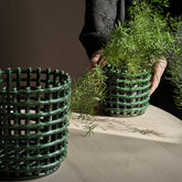 Bringing the traditional basket weaving technique to pottery, this handmade Ceramic Basket recreates the familiar feel of woven containers. The multifunctional design can be put to use as a plant pot, fruit bowl, or decorative focal point in any room. Crafted by hand, each individual piece is unique.