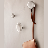 Jewellery designer Helena Rohner brings her signature aesthetic to ferm LIVING with a series of decorative objects for the home. Inspired by the convex shape of the chanterelle mushroom with its characteristic unfurled cap, this practical hook is sculpted from stainless steel with a cool sheen. Originally formed by hand, it brings a human touch to interiors. Use it in the kitchen, hallway, bathroom or bedroom to hang towels or clothes. Engraved with the initials of both Helena Rohner and ferm LIVING, the hook comes packaged in a textile pouch.
