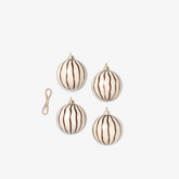 Adorn your Christmas tree with this set of four hand-painted glass ornaments. Each ornament features casual, uneven lines on an off-white base, giving them a unique and understated look. The set comes with a 1.6-meter cream-colored ribbon for hanging, and each ornament is one-of-a-kind.