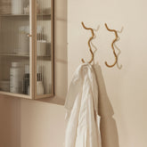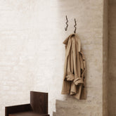 Curvature is a series of organically shaped accessories for the home that have been hand-formed in pure, solid blackened brass with a matte finish. The whimsical curves juxtapose the solidity of the material, and make a feminine, functional addition to any bedroom, bathroom, hallway, or kitchen. Hang towels, clothes, or your favorite accessories from this generously sized hook. Crafted by hand, no two hooks are 100% identical.