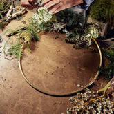 Adorn your windows or walls with this geometric brass circle, designed to inspire your creativity. Decorate the ring with your choice of foliage, dried flowers, ribbons, or seasonal embellishments. The simple brass ring will also look stunning hanging in a window on its own, adding a touch of elegance to any space.