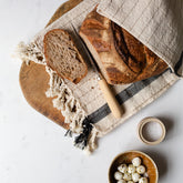 These towels are woven on traditional semi-automatic looms in Turkey. They are made with sustainable fibers such as cotton and linen. They get softer and more absorbent with every wash. Our Turkish towels accommodate heavy usage over many years, which means less waste from your household. Their multi-use functionality and aesthetic design mean that these towels can also be used as a hair towel, mini scarf, kitchen towel besides hand towel.