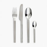 With this cutlery, Ann Demeulemeester puts an innovative design on the table. Pure and even slightly dangerous. Through its approach across the three dimensions, the knives, forks and spoons take on a strong sculptural shape. A shape that differs from one another in the way the handle is faceted by hand. The way in which the light is fragmented through the facets creates an elegance that contrasts with the weight of the cutlery. Zoë exists in four versions: matte black stainless steel, matte anthracite stainless steel, polished stainless steel and polished silver-plated stainless steel.