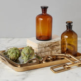 This sleek metal tray adds a touch of modern style to any space. Designed for decorative use, it's the ideal ottoman styler for pairing with coffee table books and candles. Easily elevate a bathroom counter by using this tray to display fragrances, bottles and soaps. Create a chic and functional statement with this versatile tray.