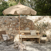 Working as a shield for summer's relentless heat, the Lull Umbrella calls for relaxation and serenity in the shade. With its romantic pagode shape and FSC™ certified wooden stem, the large outdoor umbrella is ideal for garden picnics, the beach, and everywhere else where you need shelter from the sun. The Lull Umbrella offers UV30+ protection and comes in a handy, matching bag to make transportation easier.