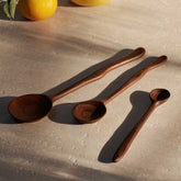 Inspired by the winding forms of rivers and natural trails, the Meander Spoon brings an artistic and organic touch to your kitchen or dining table. Crafted from carbonised ash wood with beautiful natural graining, its fluid silhouette blends utility with decorative appeal. Whether used for cooking or as part of a thoughtfully styled tablescape, this spoon is both practical and sculptural.