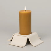 A soft gesture in hard material. Noor cradles your candle in a sculptural weave, folding upward to form a pedestal for pillar light. Echoing the rhythmic folds of our Gala Tray and Stria sconces, its low, grounded silhouette is equal parts poetic and practical. Striking on its own. Even better as a pair. Available in 2 heights.