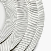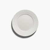 These medium-sized white porcelain plates are finished with a transparent glaze. The pattern creates a playful look and feel and a vibrant table setting when combined with other items from the Nido collection.