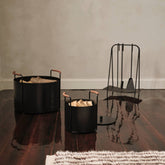 Inspired by jewellery, this set of tools brings out the best of your fireplace. With organic shapes and delicate lines, the powder coated steel ensemble helps you tend to the fire in style. Merging functionality and aesthetics, the set lightens up the area around your hearth or fireplace. The set includes a stoker, spade, a broom, and the stand. Available in black and brass.