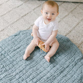 Hand-woven with love, our quilted linen play mats are made from the very softest natural fibers and dyed in delicate, neutral hues. Thick cotton filling and our signature stone washed linen make this mat cozy, portable and easy to wash.