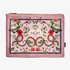Crafted from polyester with a velvet texture, printed by sublimation with a simple tone-on-tone hem detail, and zipper closure.