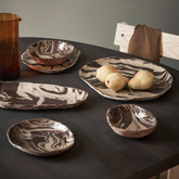 The Ryu tableware collection derives its name from the Japanese word for ’flow’, which refers to the intricate patterns that adorn these distinctive plates. Crafted using the traditional 'Nerikomi' technique, where two differently coloured clays are kneaded, rolled, and cut by hand, this process results in one-of-a-kind patterns that are unique to each individual piece. Elevate your dining experience with these artful creations or showcase them on the wall as captivating statement pieces.