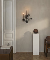 Build up your sculpture from the base of the wall hanger with your collection of candle holders. We recommend placing a maximum of 25 and a minimum of 5 candle holders on the wall hanger when creating your wall sculpture to obtain the best visual base.