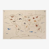 Inspire a love for learning and discovery with The World Textile Map – a tactile wall decoration that turns geography into a fun, visual adventure. Featuring delicately printed outlines of the continents and vibrant embroidered animals from around the world, this map encourages children to explore the planet’s wildlife while adding color and texture to their space. Crafted from 100% GOTS certified organic cotton, it’s both educational and decorative.