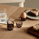 Add a playful yet elegant detail to your brunch setting with the Tinta Egg Cups. Each cup in the set features a unique splash of solid coloured dots, living up to its name—Tinta, meaning "ink" in Spanish. Crafted from machine-pressed glass, the four egg cups come beautifully packaged in a wooden box, making them both a charming tabletop feature and a thoughtful gift.