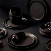 Tunisian 12pc Dinnerware set - Dinner Plate, Side Plate + Bowl - Matte Black