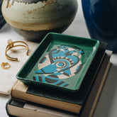 This elegant tray features a striking design accented with shimmering details. It offers a refined and contemporary aesthetic. Perfect for holding jewelry, keys, or other small treasures, it adds a touch of artistic sophistication to any space.
