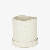 Featuring an unglazed, rough outer surface and an artfully uneven edge, the Uneru Pot and matching saucer will provide any space with a warm, tactile expression. Made from 30-40% recycled clay, the inside of the pot has been glazed, making it the ideal home for your favorite plants.