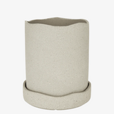 Featuring an unglazed, rough outer surface and an artfully uneven edge, the Uneru Pot and matching saucer will provide any space with a warm, tactile expression. Made from 30–40% recycled clay, the inside of the pot has been glazed, making it the ideal home for your favourite plants.