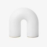 Blending sculptural elegance with functional lighting, the Vuelta Table Lamp is a modern statement piece. Crafted from opal glass with a rippled surface, it emits a soft, diffused glow that enhances any space with warmth and sophistication. Featuring an integrated dimmable LED and a brass base for a refined touch, this lamp is perfect for bedside tables, workspaces, or living room accents.