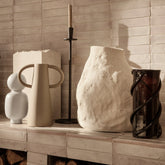 The Vulca Vase’s fluid form and richly textured surface reflect the raw, rugged beauty of volcanic bedrock. Made from stoneware and coated with a stony off-white glaze, its granular texture ensures each piece has a unique character. Ideal for floral arrangements or as a standalone sculptural accent, the vase brings a natural, tactile elegance to your space.