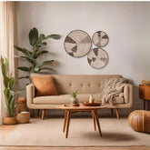 This modern set of 3 Wall Baskets with Graphic Triangles adds a touch of handmade global decor to any room. A perfect wall accent with a minimalist, contemporary look that looks at home practically in any space. Price is per set of 3 baskets.