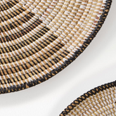 Wolof women in rural Senegal weave these baskets from millet grass, and black + white plastic threads which add strength and durability.