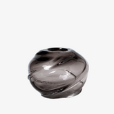 Inspired by the motion of swirling water, this round mouth-blown vase in translucent grey glass is a sculptural statement with a serene, flowing form. Despite its solid, massive glass construction, it maintains a delicate and airy aesthetic. Each vase is individually mouth-blown, making every piece one-of-a-kind with natural twists and curves. Display it alone or filled with your favorite blooms to elevate any space.