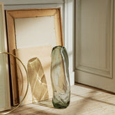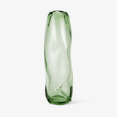 Recalling the graceful flow of cascading water, this mouth-blown vase is crafted from 100% recycled glass in a crystal-clear finish. Its oversized form and delicate, fluid silhouette give it a light, almost dancing presence, despite the solid weight of its construction. Whether adorned with floral arrangements or displayed as a sculptural object, each piece is unique thanks to the organic twists and curves of the handmade process.