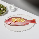 FAZEEK’s Wave Oval Platter - White is where tradition meets design. This elongated, ceramic platter will suit a whole fish, Sunday roast, or a decadent, deconstructed dessert.