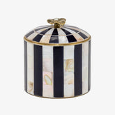 Add a touch of elegance and practicality to your space with the Zoey Circus Box, a beautifully handcrafted piece designed to combine function and charm. Featuring a sophisticated navy-and-white striped pattern made of shell and resin, and a delicate flower accent on top.