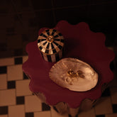 Add a touch of elegance and practicality to your space with the Zoey Circus Box, a beautifully handcrafted piece designed to combine function and charm. Featuring a sophisticated navy-and-white striped pattern made of shell and resin, and a delicate flower accent on top.